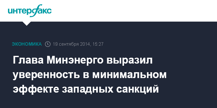 Москва. 19 сентября. INTERFAX.RU - Министр энергетики РФ Александр Новак заявил, что потери, которые может понести экономика России от введения санкций ЕС и США, будут минимальны.
