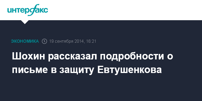 Шохин рассказал подробности о письме в защиту Евтушенкова