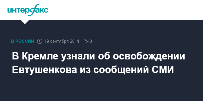Москва. 19 сентября. INTERFAX.RU - В Кремле узнали из сообщений СМИ об освобождении основного владельца АФК "Система" Владимира Евтушенкова из-под домашнего ареста.