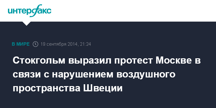 Стокгольм выразил протест Москве в связи с нарушением воздушного пространства Швеции