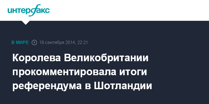 Королева Великобритании прокомментировала итоги референдума в Шотландии