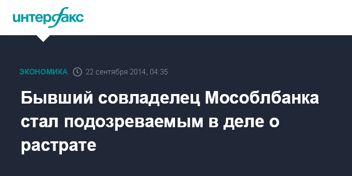 Бывший совладелец Мособлбанка стал подозреваемым в деле о растрате