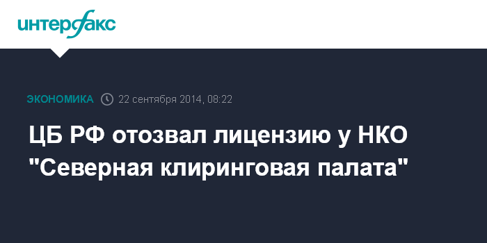 ЦБ РФ отозвал лицензию у НКО "Северная клиринговая палата"