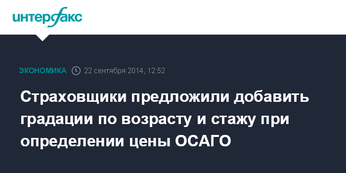 Москва. 22 сентября. INTERFAX.RU - Российский союз автостраховщиков (РСА) направил в Центробанк РФ новые предложения, расширяющие градацию по стажу и возрасту водителей при определении стоимости полиса ОСАГО, говорится в сообщении РСА.