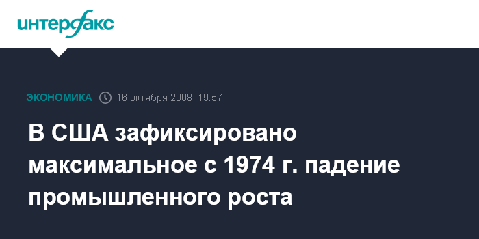 Москва. 16 октября. INTERFAX.RU - Объем промышленного производства в США в сентябре снизился на 2,8%, что стало максимальным падением с 1974 г., сообщило агентство Bloomberg со ссылкой на данные Федеральной резервной системы (ФРС) США. Такая ситуация связана с обрушившимися в прошлом месяце на страну ураганами и забастовкой сотрудников Boeing, отмечают в ФРС.