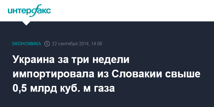Москва. 22 сентября. INTERFAX.RU - С 1 по 21 сентября Украина импортировала со стороны Словакии 537 млн кубометров природного газа. По оперативным данным еustream a.s., оператора газотранспортной системы Словакии, величина реверсного потока в направлении Украины стабильно держится в районе 26 млн кубометров в сутки.
