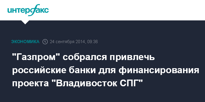 Москва. 24 сентября. INTERFAX.RU - "Газпром" изучает возможность привлечения проектного финансирования от российских банков для проекта "Владивосток СПГ", сообщил замглавы департамента управления проектами "Газпрома" Виктор Тимошилов на пресс-конференции в рамках конференции "Нефть и газ Сахалина 2014".