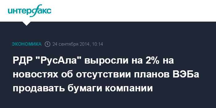 РДР "РусАла" выросли на 2% на новостях об отсутствии планов ВЭБа продавать бумаги компании