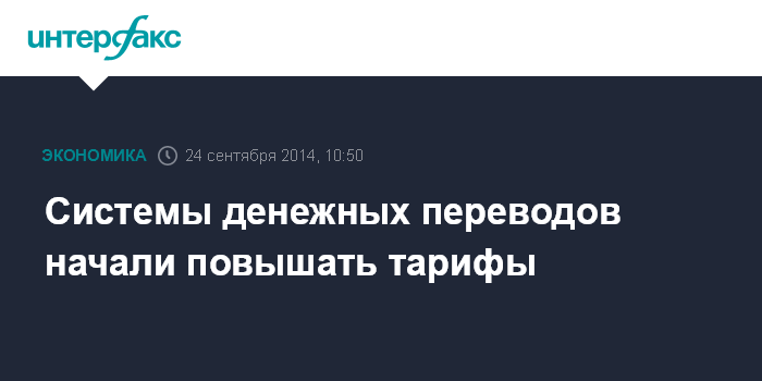 Москва. 24 сентября. INTERFAX.RU - Системы денежных переводов начинают повышать тарифы - с октября это сделает Western Union (WU), по ряду направлениям - "Юнистрим", а "Быстрая почта" Райффайзенбанка вынуждена покинуть рынок, пишет "Коммерсантъ".