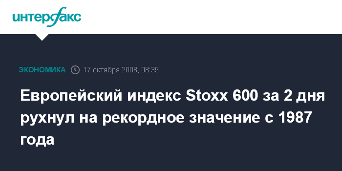 Снижение Dow Jones Stoxx 600 за последние два дня составило 11%, что является максимальным сокращением с октября 1987 года. 16 октября индикатор потерял 5%.