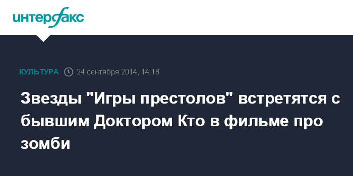 Звезды "Игры престолов" встретятся с бывшим Доктором Кто в фильме про зомби