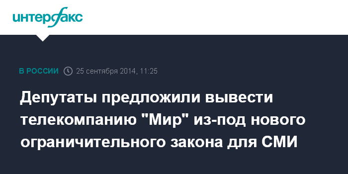 Депутаты предложили вывести телекомпанию "Мир" из-под нового ограничительного закона для СМИ
