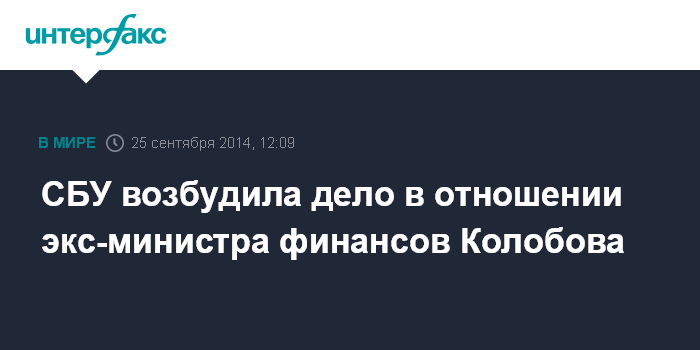 Москва. 25 сентября. INTERFAX.RU - Служба безопасности Украины начала уголовное производство в отношении бывшего министра финансов Украины Юрия Колобова и других членов бывшего правительства страны по делу о злоупотреблении властью или служебным положением.