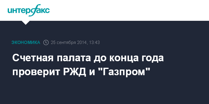 Москва. 25 сентября. INTERFAX.RU – Счетная палата до конца 2014 года проведет проверки РЖД и "Газпрома", сообщила журналистам глава ведомства Татьяна Голикова.