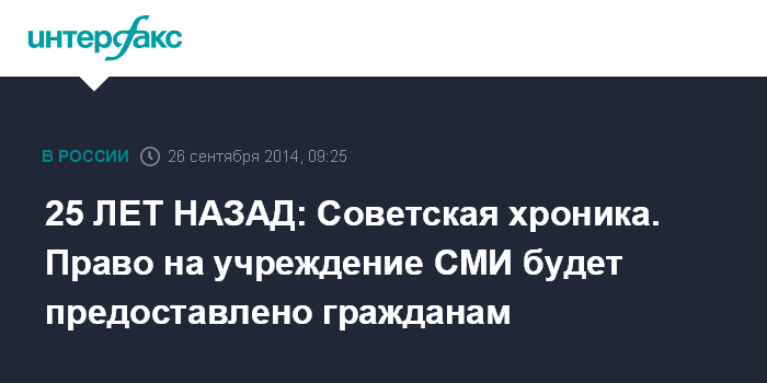 25 ЛЕТ НАЗАД: Советская хроника. Право на учреждение СМИ будет предоставлено гражданам