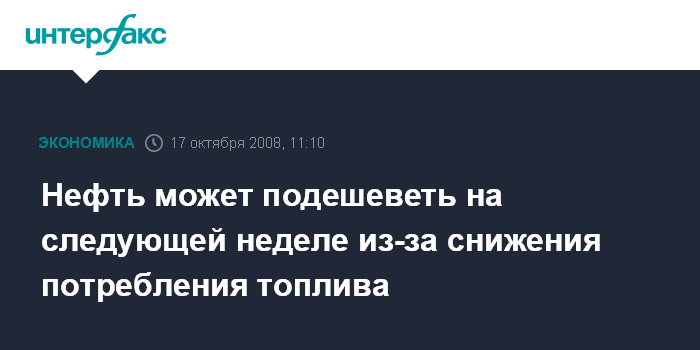 Нефть может подешеветь на следующей неделе из-за снижения потребления топлива