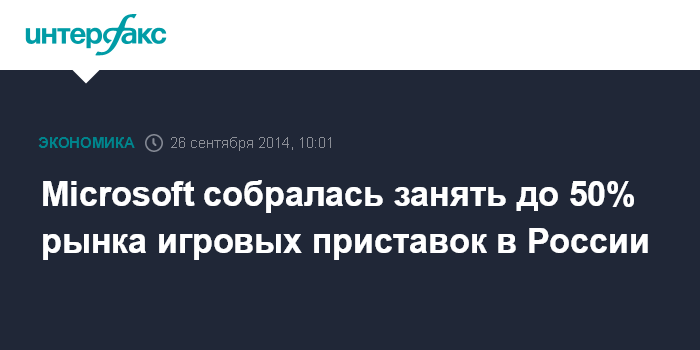 Москва. 26 сентября. INTERFAX.RU - Американская Microsoft рассчитывает занять до 50% российского рынка игровых приставок за счет новой версии игровой консоли - Xbox One, следует из заявления руководителя отдела аппаратно-развлекательных платформ Microsoft Россия Андрея Калугина. "Я уверен, что Xbox One в России ждет, как минимум, такой же успех как и Xbox 360", - говорит он.