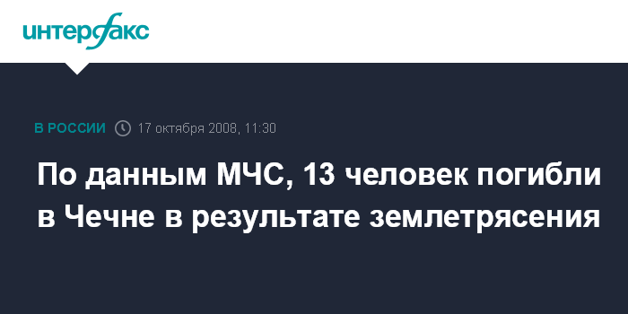 По данным МЧС, 13 человек погибли в Чечне в результате землетрясения