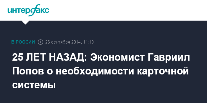 25 ЛЕТ НАЗАД: Экономист Гавриил Попов о необходимости карточной системы