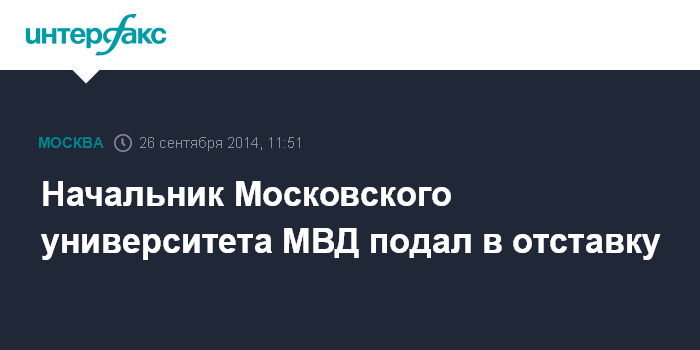 Москва. 26 сентября. INTERFAX.RU - Начальник Московского университета МВД генерал-лейтенант Николай Румянцев подал в отставку, сообщил в твиттере депутат Александр Хинштейн.