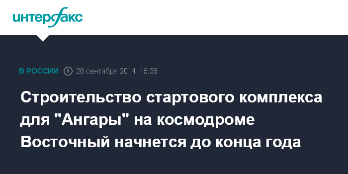 Москва. 26 сентября. INTERFAX.RU - Работы по созданию стартового комплекса для ракеты-носителя "Ангара" на космодроме Восточный в Амурской области начнутся до завершения текущего года, сообщил журналистам глава Федерального космического агентства (Роскосмос) Олег Остапенко.