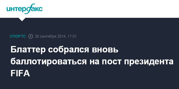 Москва. 26 сентября. INTERFAX.RU - Действующий президент Международной федерации футбола (FIFA) Йозеф Блаттер на пресс-конференции в пятницу подтвердил свое участие в следующих выборах президента организации.