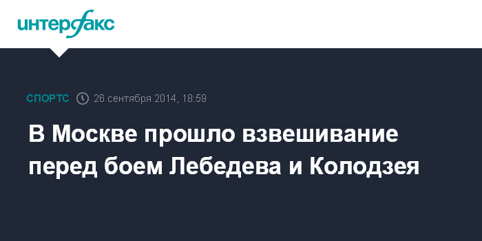 Москва. 26 сентября. INTERFAX.RU - Официальная церемония взвешивания перед боем за звание чемпиона мира по WBА между россиянином Денисом Лебедевым и поляком Павлом Колодзеем прошла в Москве.