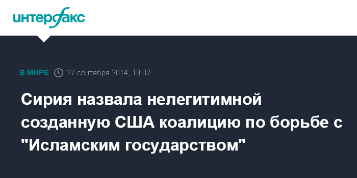 Сирия назвала нелегитимной созданную США коалицию по борьбе с "Исламским государством"