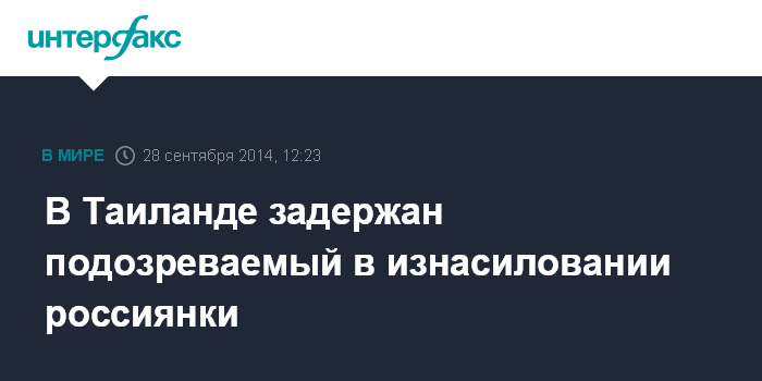 Москва. 28 сентября. INTERFAX.RU - Полиция Таиланда задержала мужчину, которого подозревают в изнасиловании 29-летней туристки из России на острове Пхукет, сообщает в воскресенье таиландский новостной сайт Phuket Wan .