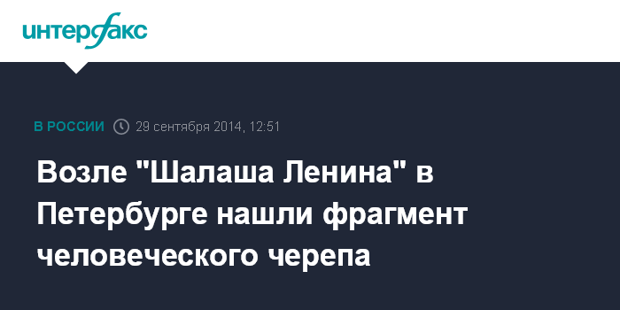 Москва. 29 сентября. INTERFAX.RU - Фрагмент человеческого черепа обнаружили рядом с музейным комплексом "Шалаш Ленина" в Курортном районе Петербурга, сообщил "Интерфаксу" в понедельник источник в правоохранительных органах.