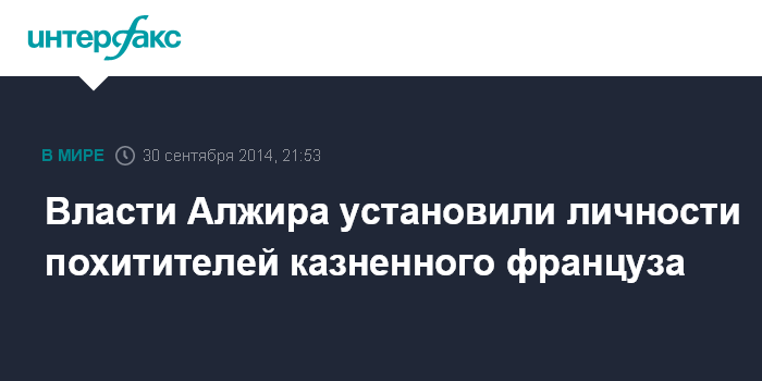 Москва. 30 сентября. INTERFAX.RU - Власти Алжира установили личности похитителей француза Эрве Гурделя, казненного террористами, передает во вторник телеканал TF1.