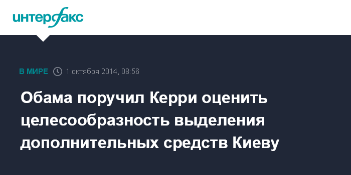 Москва. 1 октября. INTERFAX.RU - Президент США Барак Обама поручил госсекретарю США Джону Керри рассмотреть возможность предоставления ряду стран, в частности Украине, дополнительной финансовой помощи, сообщила во вторник пресс-служба Белого дома.