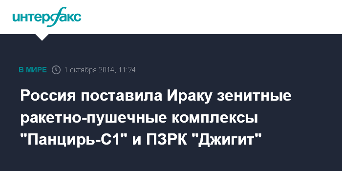 Россия поставила Ираку зенитные ракетно-пушечные комплексы "Панцирь-С1" и ПЗРК "Джигит"
