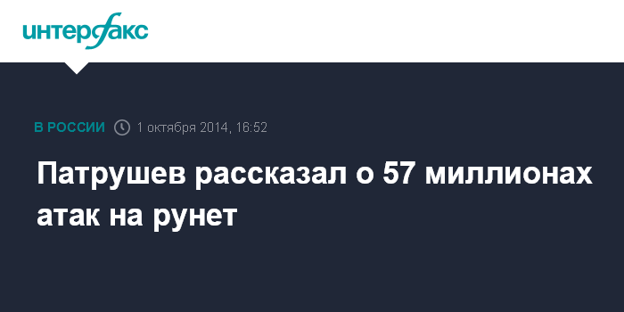 Москва. 1 октября. INTERFAX.RU - На российский сегмент интернета за шесть месяцев 2014 года было осуществлено 57 млн атак, что связано с сочинской Олимпиадой, а также событиями вокруг Крыма и на юго-востоке Украины, заявил секретарь Совбеза РФ Николай Патрушев.