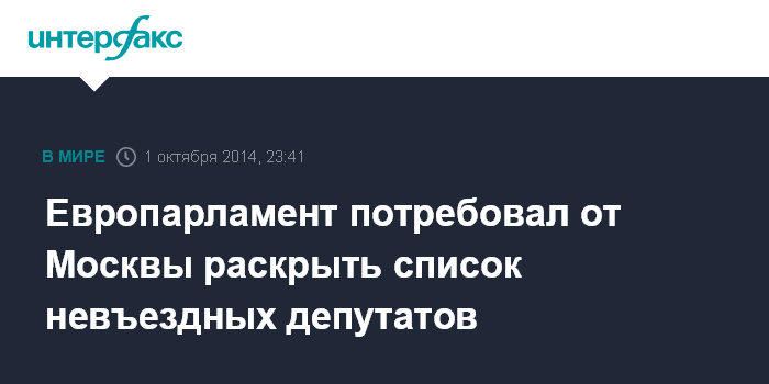 Европарламент потребовал от Москвы раскрыть список невъездных депутатов