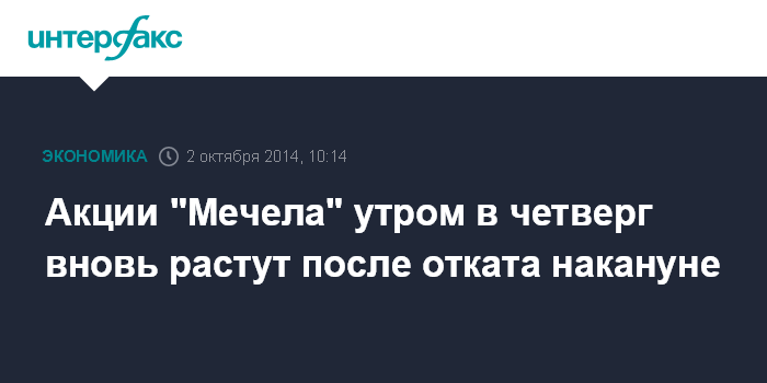 Москва. 2 октября. INTERFAX.RU - Акции "Мечела" утром в четверг вновь растут после отката накануне вечером на новостях об иске Сбербанка России в Арбитражный суд Москвы за просрочку процентных платежей по долгам.