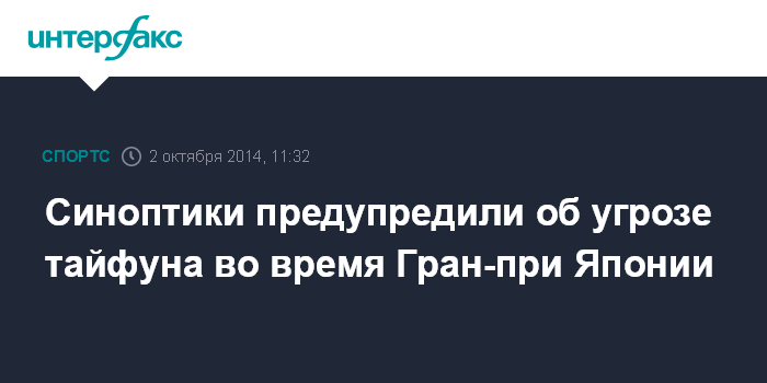 Москва. 2 октября. INTERFAX.RU - Организаторы японского этапа чемпионата мира "Формулы-1" предупредили команды о том, что на страну надвигается тайфун, сообщает Motorsport.