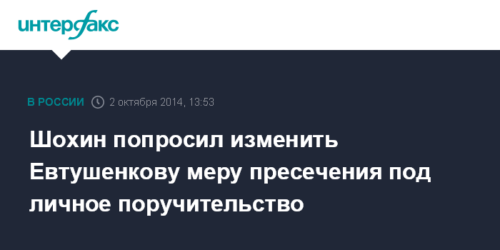 Шохин попросил изменить Евтушенкову меру пресечения под личное поручительство