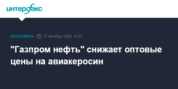 Таким образом, с августа 2008 г. отпускные цены на авиакеросин с нефтеперерабатывающих заводов компании снизились в среднем на 30%.