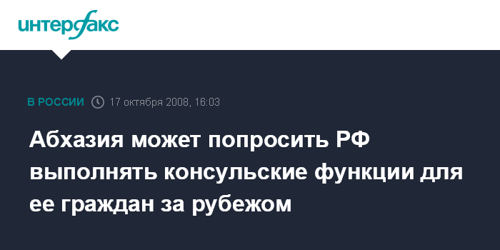 Москва. 17 октября. INTERFAX.RU - Абхазия может обратиться к России с просьбой, чтобы ее посольства представляли республику за рубежом.
