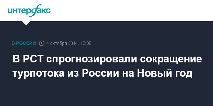 Москва. 4 октября. INTERFAX.RU - Турпоток из России на новогодние праздники существенно сократится, сообщила порталу "Интерфакс-Туризм" пресс-секретарь Российского союза туриндустрии (РСТ) Ирина Тюрина.