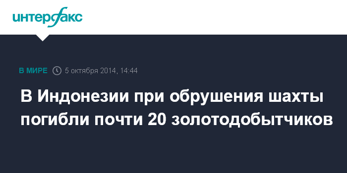 Москва. 5 октября. INTERFAX.RU - Обвал грунта в нелегальной шахте по добыче золота в Индонезии привел к гибели, по меньшей мере, 18 человек, сообщают в воскресенье индонезийские СМИ.
