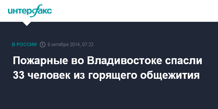 Москва. 6 октября. INTERFAX.RU - Пожарные во Владивостоке спасли из горящего общежития 33 человек. Об этом сообщает пресс-служба ГУ МЧС по Приморскому краю.