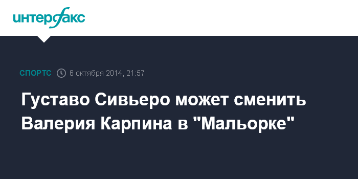 Москва. 6 октября. INTERFAX.RU - Густаво Сивьеро может стать новым главным тренером испанского клуба "Мальорка", сообщает твиттер Radio Bellver.