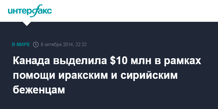 Москва. 6 октября. INTERFAX.RU - Глава МИД Канады Джон Бэрд объявил о предоставлении помощи в размере $10 миллионов беженцам из Ирака и Сирии, пострадавшим от действий боевиков из радикальной группировки "Исламское государство" (ИГ), сообщила в понедельник BBC News.