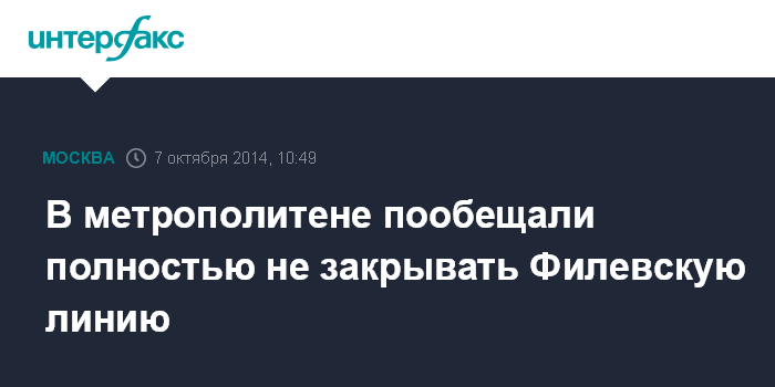 Москва. 7 октября. INTERFAX.RU - Московский метрополитен не рассматривает вопрос о закрытии Филевской линии на ремонт в ближайшее время, сообщили "Интерфаксу" в пресс-службе предприятия в понедельник.