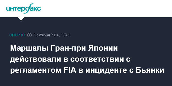 Маршалы Гран-при Японии действовали в соответствии с регламентом FIA в инциденте с Бьянки