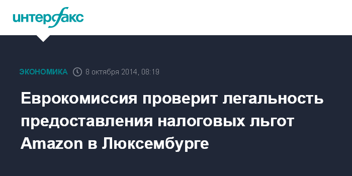 Москва. 8 октября. INTERFAX.RU - Европейская комиссия начала проверку в отношении крупнейшего в мире интернет-ритейлера Amazon.com в связи с налоговыми преференциями, которые есть у компании в Люксембурге, сообщает BBC.