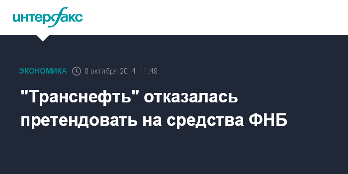 "Транснефть" отказалась претендовать на средства ФНБ