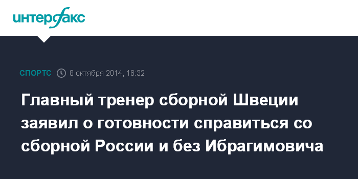 Главный тренер сборной Швеции заявил о готовности справиться со сборной России и без Ибрагимовича